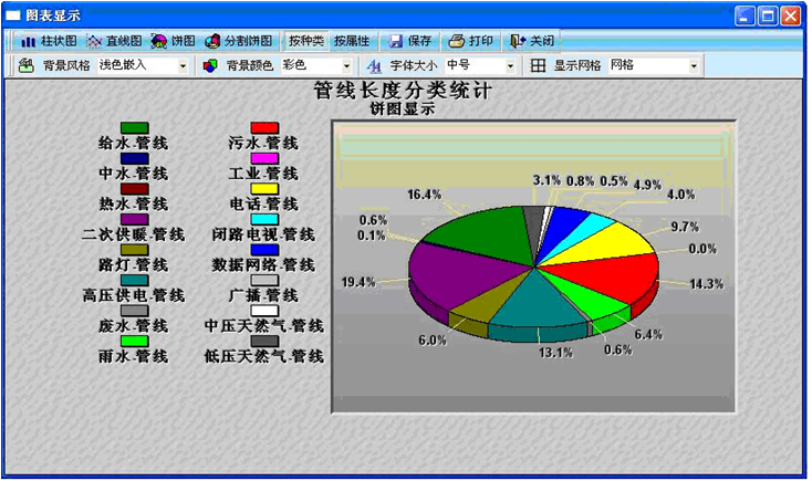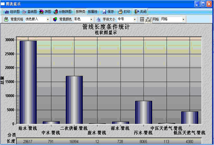 | 管网数据统计功能: 可实现管线长度统计、管点数量统计、分类统计、范围统计、条件统计等功能 |