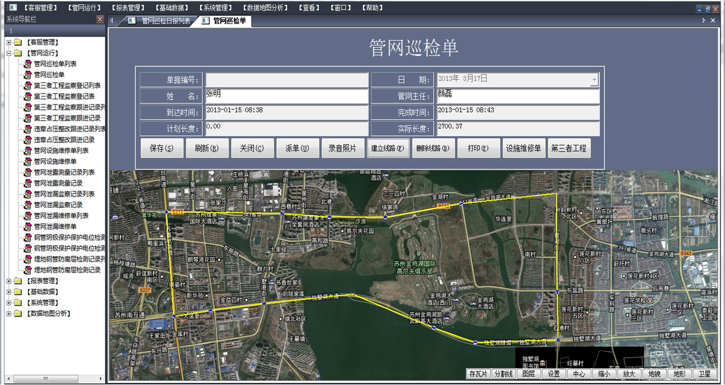 | 设备运行报表:管线及其附属设施的历史运行数据的分析统计与查询 | |