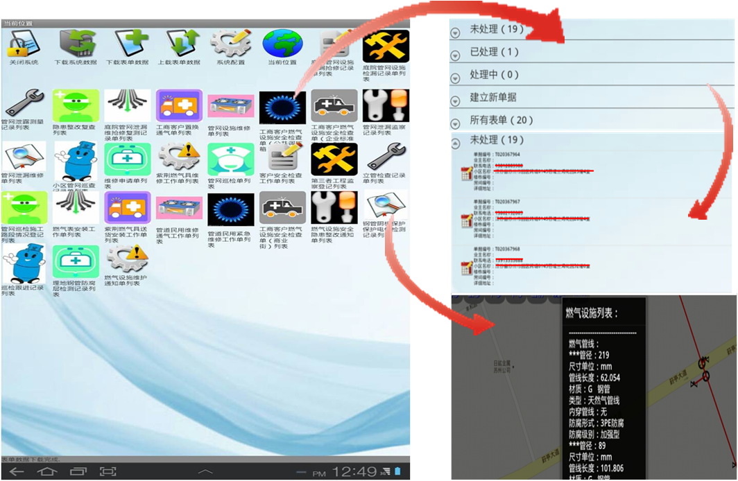 | 现场信息采集:管线极其附属设施工作状态和运行参数的记录与上传 | |